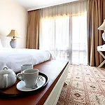 Primoretz Grand Hotel & Spa в Бургасе с балконом и гардеробной предлагает 10 номеров с видом на сад. В благоустроенных номерах гости могут воспользоваться бесплатным Wi-Fi и телевизором с плоским экраном, а также мини-баром. В безопасных ванных комнатах, оборудованных тропическим душем, гидромассажной ванной и паровой баней, есть фен и халаты.